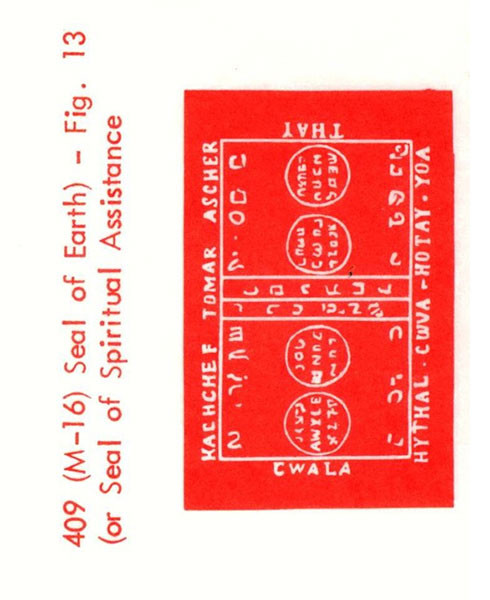 The Seal of Earth is referred to as the Seal of Spiritual Assistance, it brings support and help from friendly gods and kind supernatual beings to assist in one's endeavors. Place beneath a White Candle anointed with Jasmine oil.